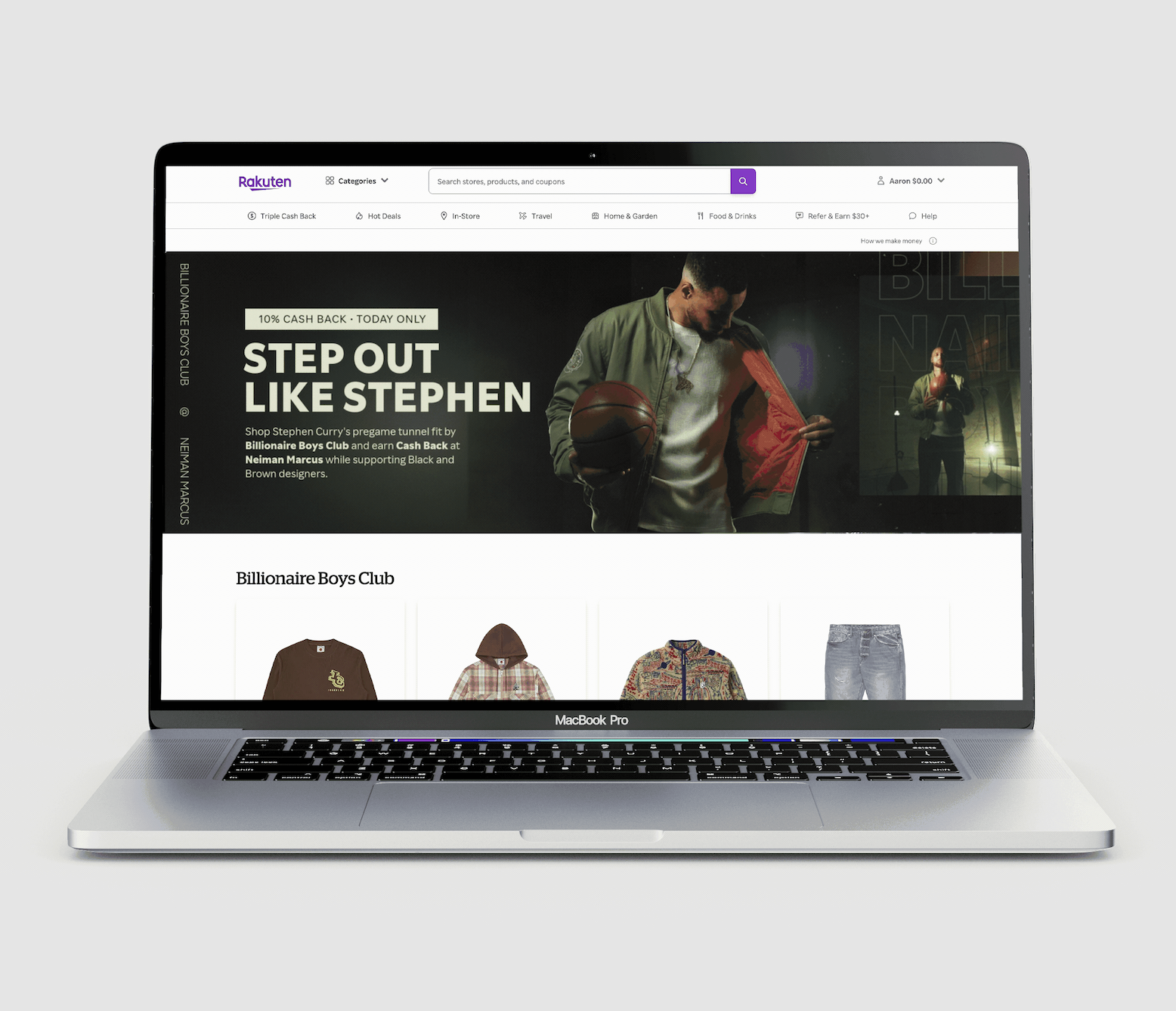 Stephen Curry is passionate about giving the underrepresented a platform to shine. Rakuten produced a program that allowed Curry to showcase Black designers through his much-beloved tunnel fits. We launched with a social-first approach that led fans to a customized shopping experiencing.